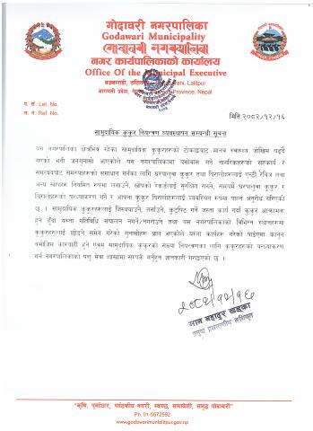 सामुदायिक कुकुर नियन्त्रण व्यवस्थापन सम्बन्धी सूचना।