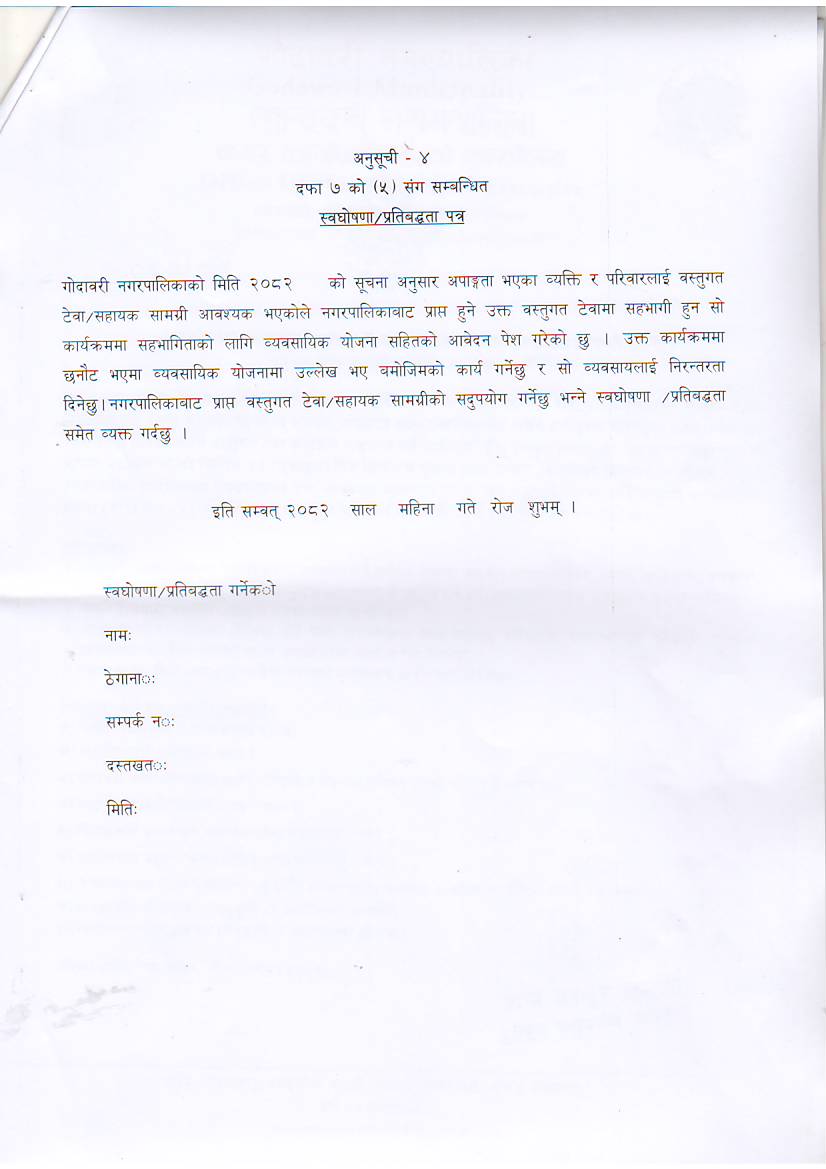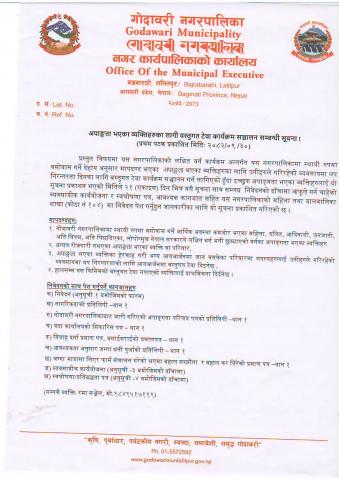 गोदावरी नगरपालिका वडा नं ३ ललितपुरस्थित गोदावरी पार्टी प्यालेसदेखि आशा नेपालसम्मको टौखेल सडक स्तरोन्नति कार्य सम्बन्धी बोलपत्र आह्वानको सूचना।