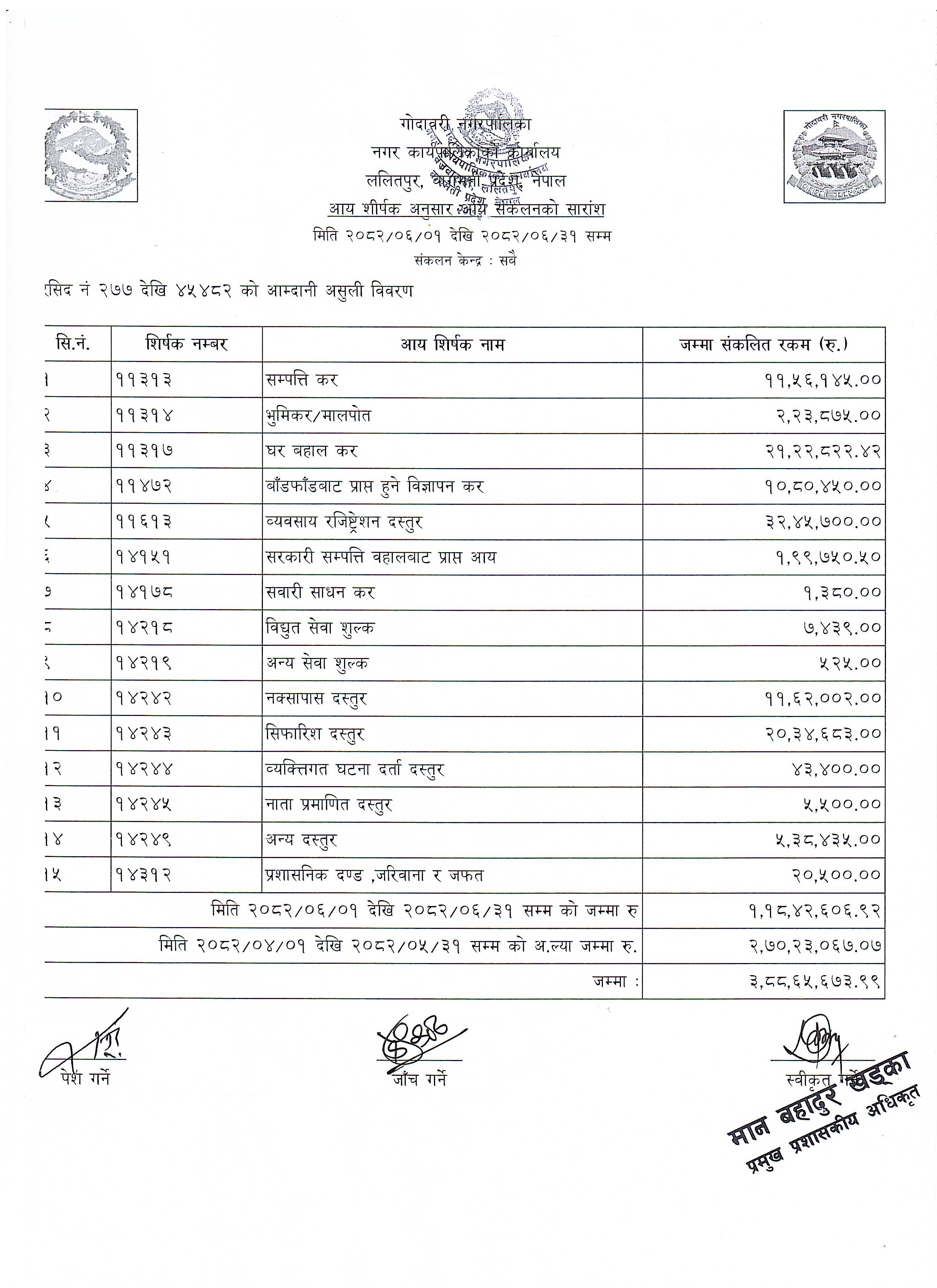 » आश्विन महिनाको आन्तरिक आमदानी विवरण सम्बन्धमा।