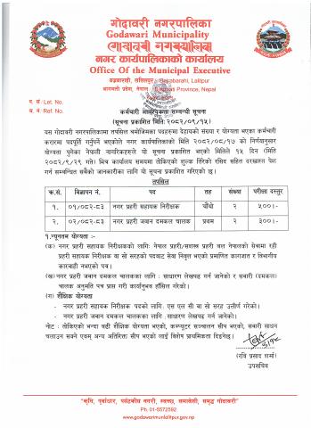 गोदावरी नगरपालिका वडा नं ३ ललितपुरस्थित गोदावरी पार्टी प्यालेसदेखि आशा नेपालसम्मको टौखेल सडक स्तरोन्नति कार्य सम्बन्धी बोलपत्र आह्वानको सूचना।