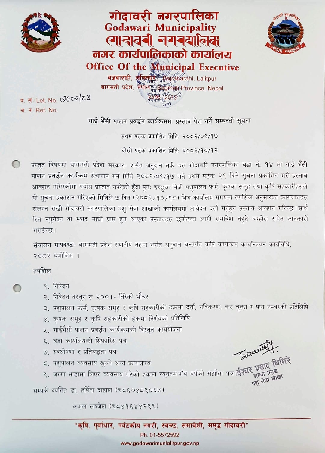 » गाई भैंसी पालन प्रवर्द्धन कार्यक्रममा प्रस्ताव पेश गर्ने सम्बन्धी सूचना।