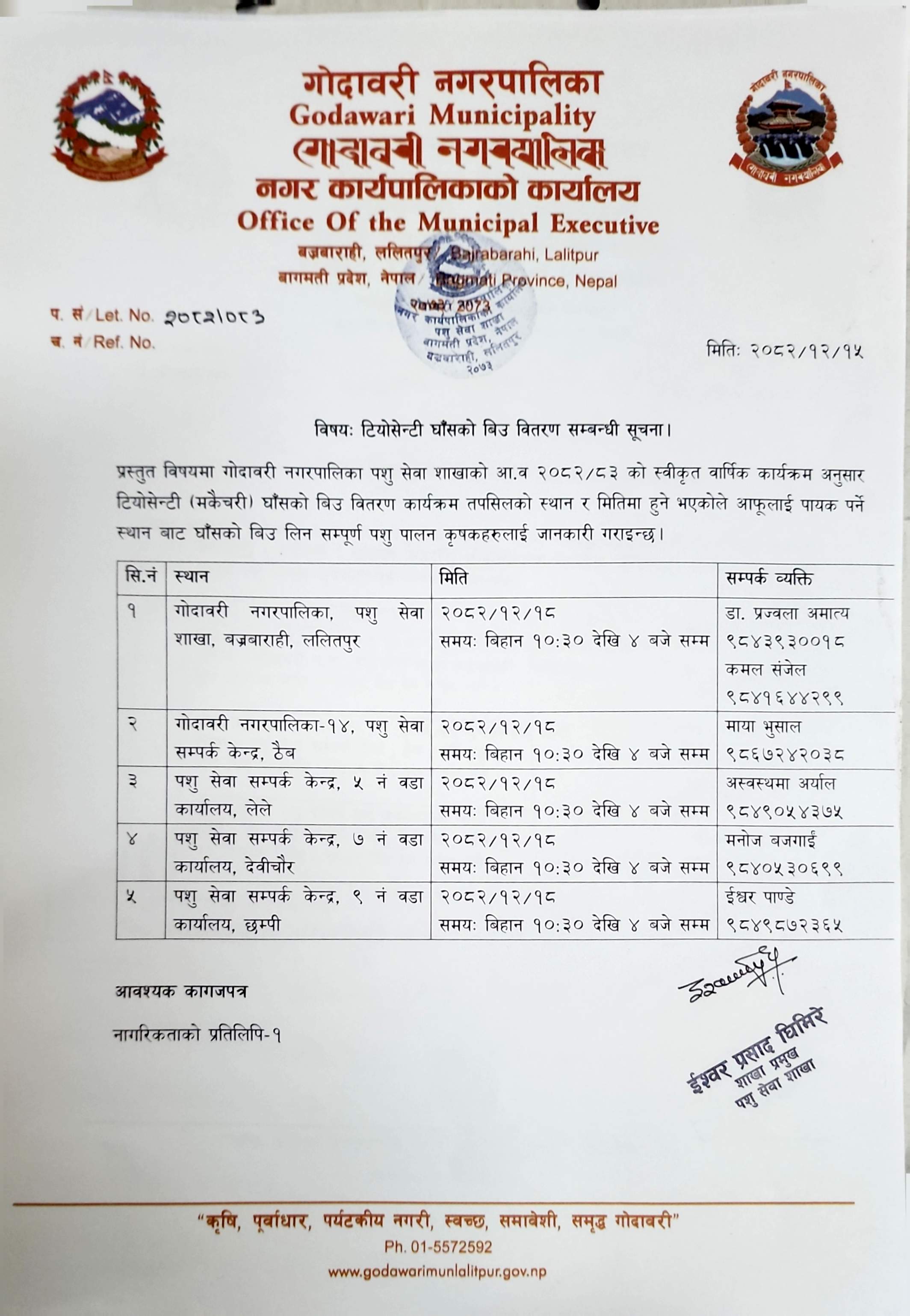 टियोसेन्टी घाँसको बिउ वितरण सम्बन्धी सूचना।