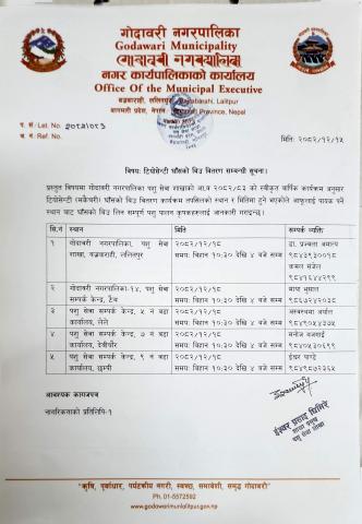 गोदावरी नगरपालिका वडा नं–०२, ललितपुरस्थित देवस्थान–खाल्डे खानेपानी आयोजना सम्बन्धि बोलपत्र आह्वानको सूचना ।