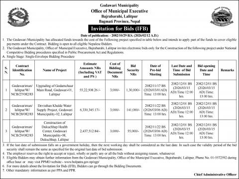 बोलपत्र आह्वान सम्बन्धी सूचना