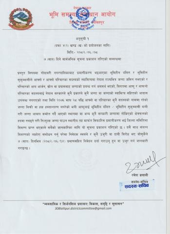 » भूमिहीन दलित र भूमिहीन सुकुम्बासीहरूको हकमा प्रकाशित दाबि विरोधको (७) सात दिने सार्वजनिक सूचना