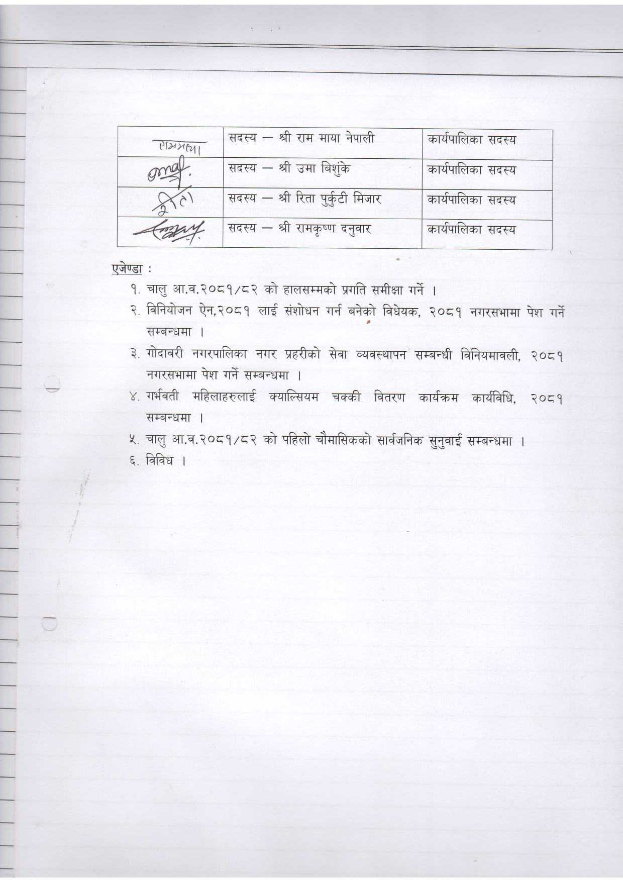 मिति २०८१/१२/११ गतेको कार्यपालिका बैठक निर्णय